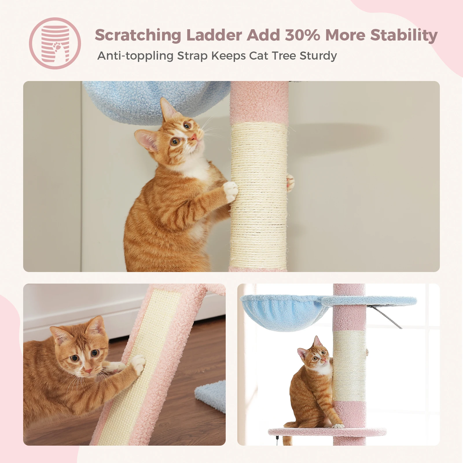Crafted with a solid base and premium materials, this cat tower ensures long-lasting stability. A built-in scratching ladder increases stability by 30%, and best of all—no drilling is required for installation.