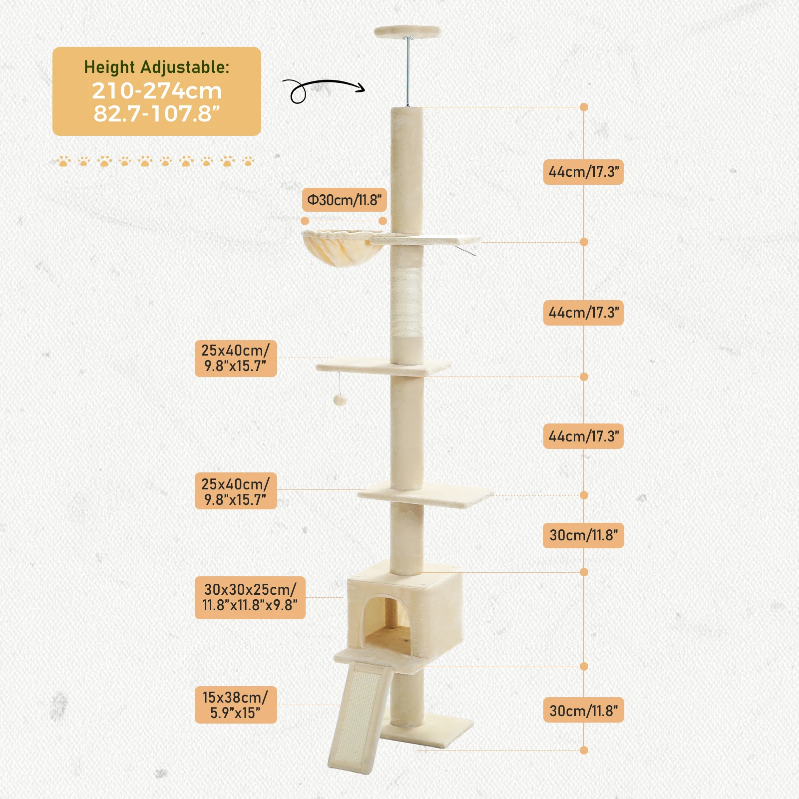 82.7"-107.8" Adjustable Floor to Ceiling Cat Tree Tower