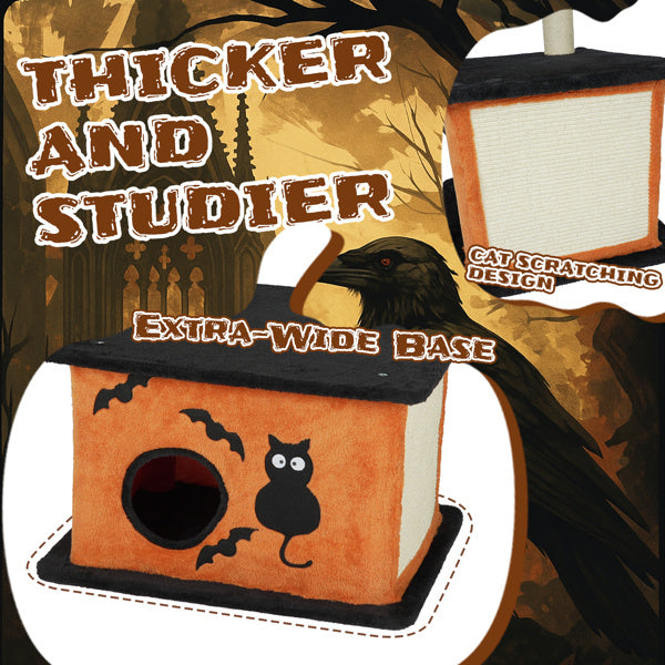 Give your feline a cozy yet spooky playground with this Halloween Cat Tree. Featuring bold black and pumpkin-orange tones, it adds a festive flair to your home—perfect for Halloween or year-round gothic vibes.