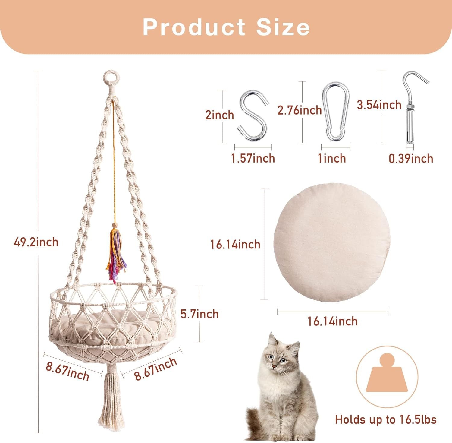 This macrame cat hammock bed combines function with style, featuring beautiful woven patterns and decorative details. It offers your cat a cozy spot to rest while serving as a unique boho accent piece for your home.